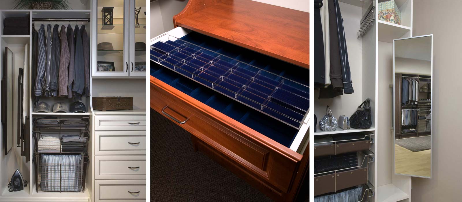Home Closet Systems' custom closet accessories enhance the design of our closet installations by adding an additional element of functionality that promotes easier use on a day-to-day basis. Many of these closet accessories are available for both reach-in and walk-in closets. Our designers can guide you toward closet accessories that are right for your organizational goals so you get a personalized installation that benefits you. Read below for more information about some of the many closet accessories we offer: